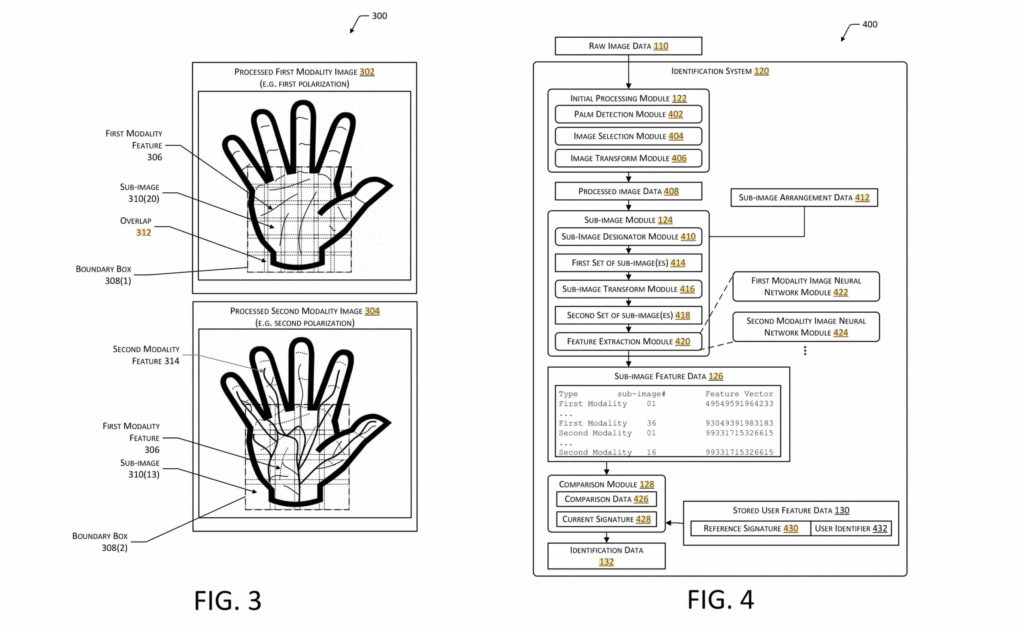 FIG. 3 illustrates a processed first modality image obtained using light with a first polarization and a processed second modality image obtained using light with a second polarization, according to some implementations.FIG. 4 is a block diagram of an identification system, according to some implementations.Click here to see more info regarding this granted patent.
