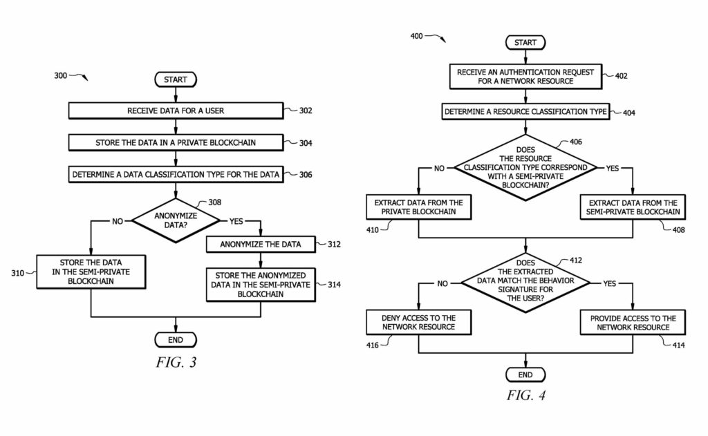 FIG. 4 is a flowchart of an embodiment of an authentication method 400 implemented by the information security system 100. A device (e.g. authentication device 106) may use an authentication engine 510 to employ method 400 to retrieve information stored in the private blockchain 110 and the semi-private blockchain 112 for authenticating a user 101. Additional details about the device and the authentication engine 510 are described in FIG. 5. Method 400 may be implemented as a stand-alone authentication process or may be integrated with other existing authentication processes.Click here to see more info regarding this granted patent.